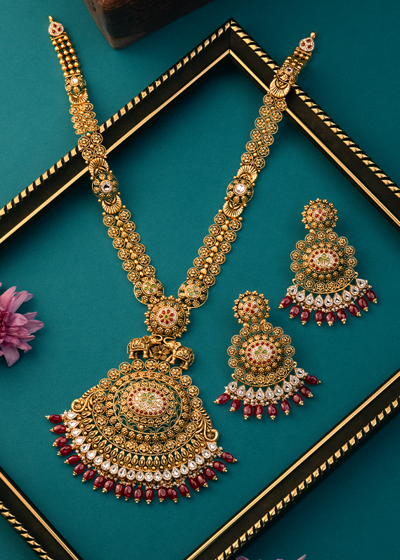 Our new necklace design in the latest collection is crafted with the beauty and elegance of Indian women in mind, featuring a perfect blend of contemporary and traditional designs.